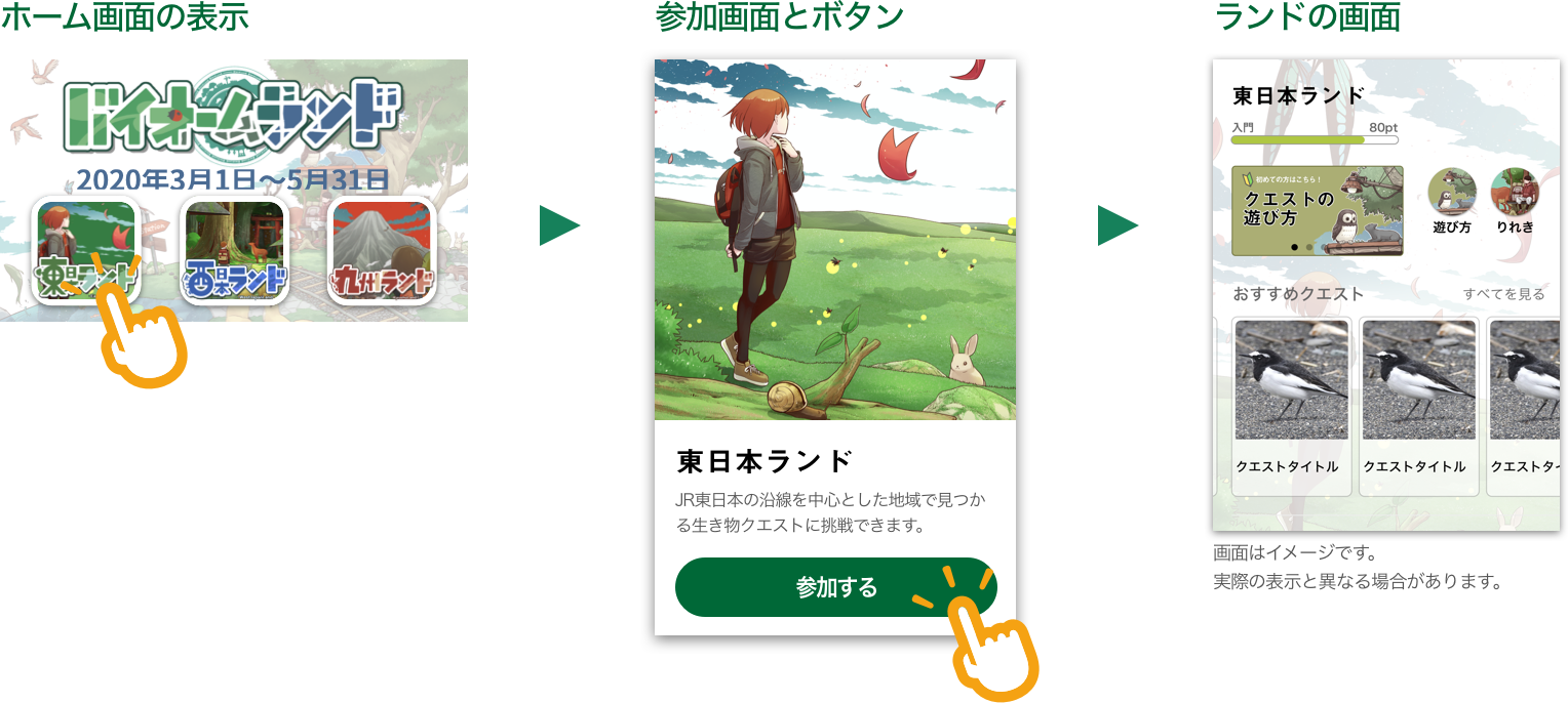 例)東日本ランドのポイントを貯めるには、東日本ランドのクエストを達成する必要があります。