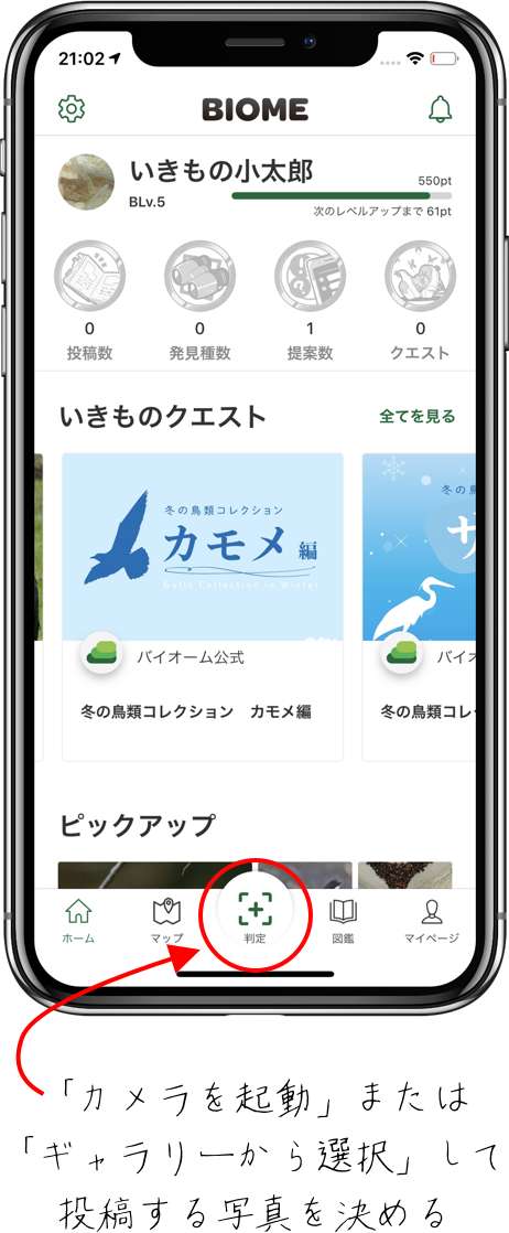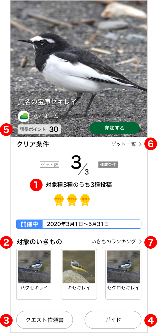 クエスト対象種の生き物のいずれかを撮影・投稿すると、
